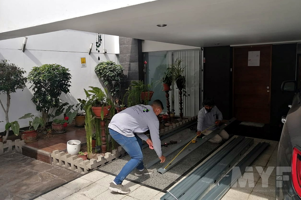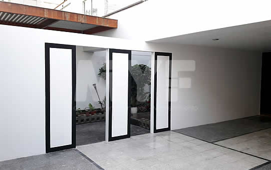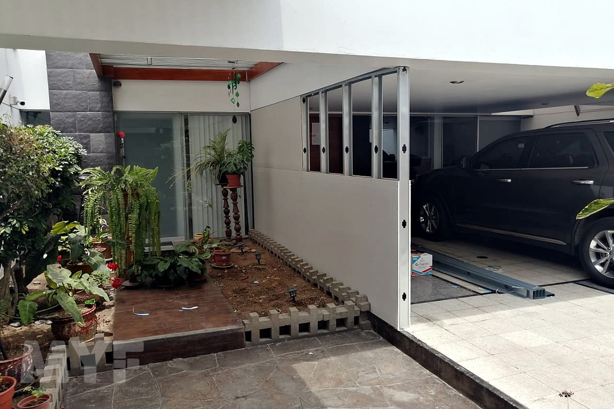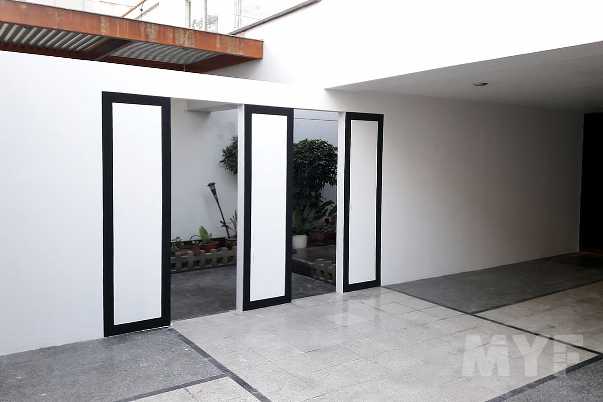 Instalación de drywall, jardín vertical y división en puertas de madera.
