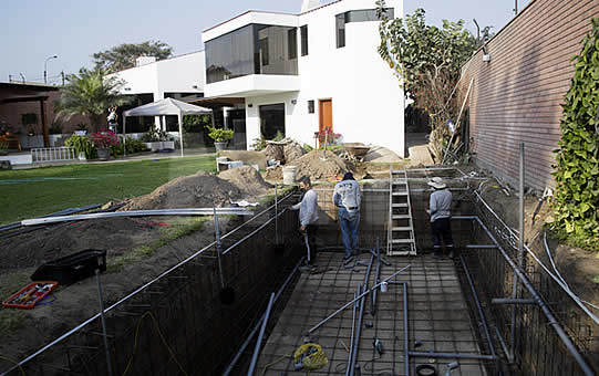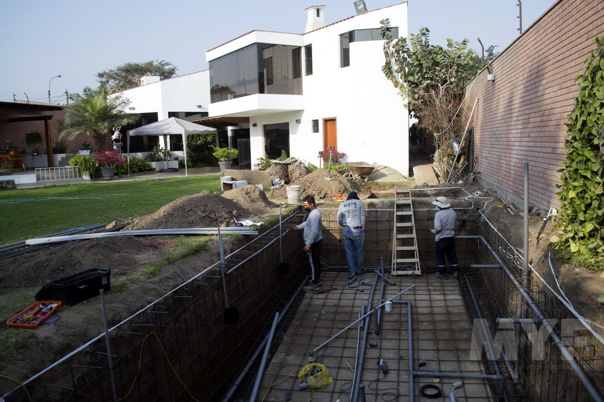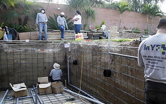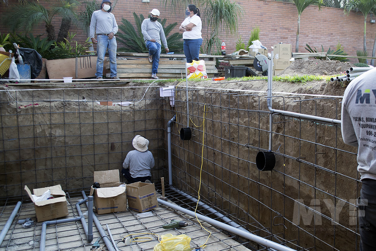Equipamiento general, tuberías, instalación de cuarto de máquinas, accesorios empotrados y velo de agua.