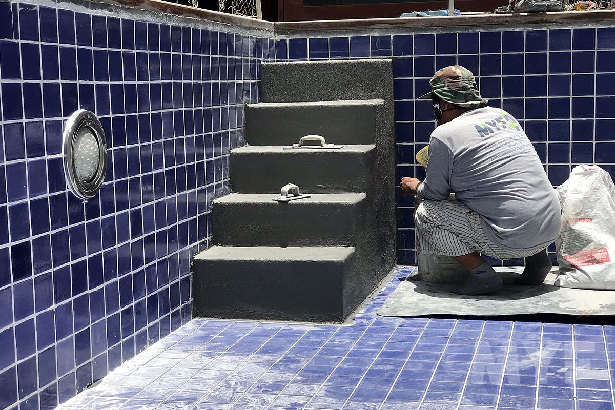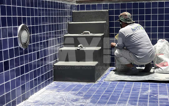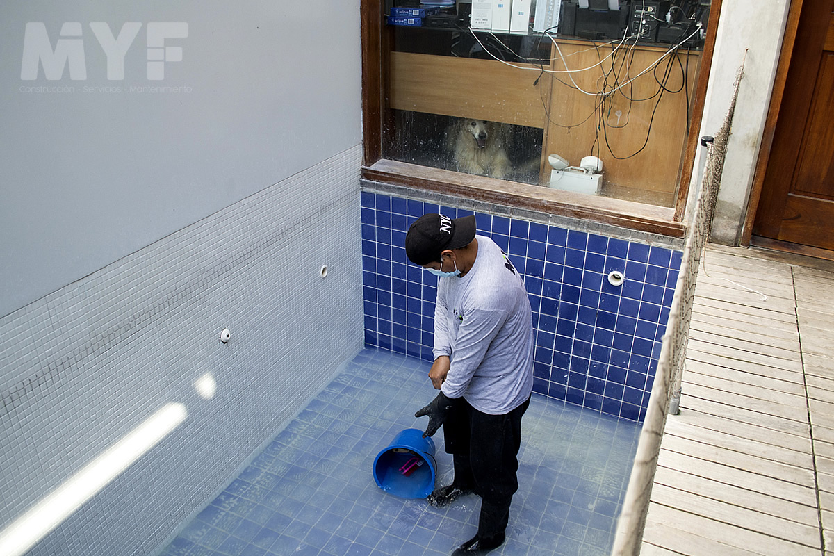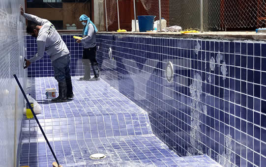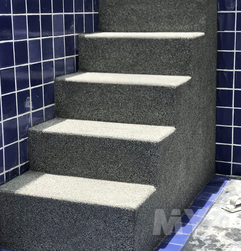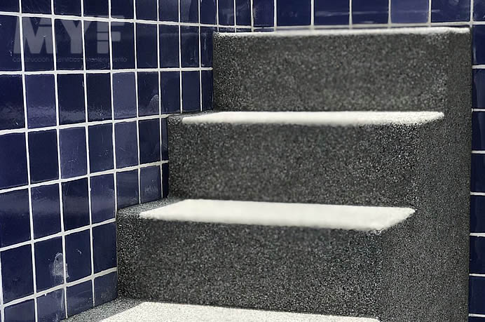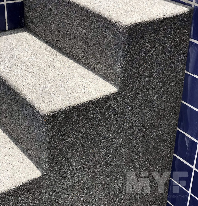 Limpieza y retiro de fragua antigua, re-fraguado total de pepelma. Revestimiento de escalera en terraza negro.