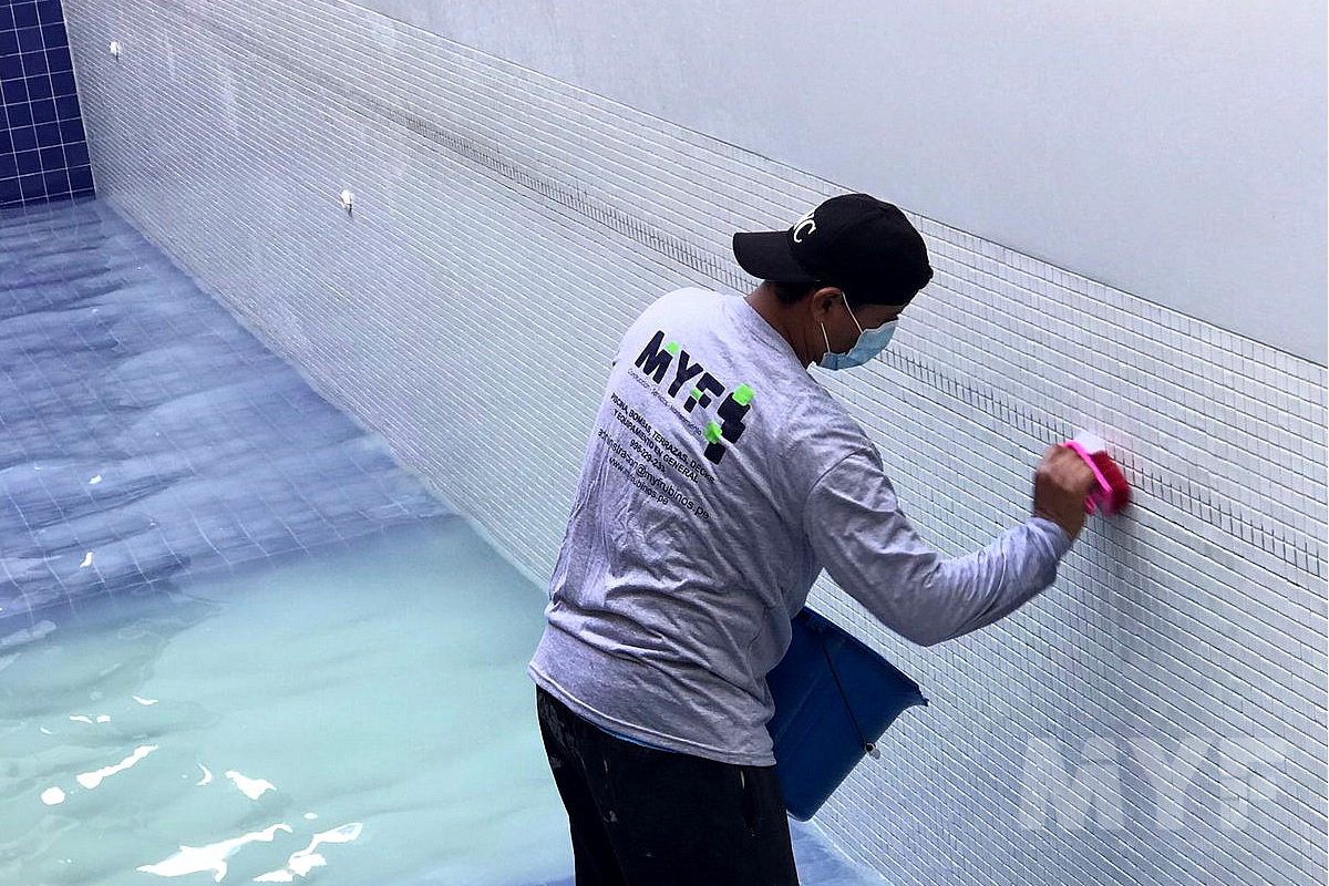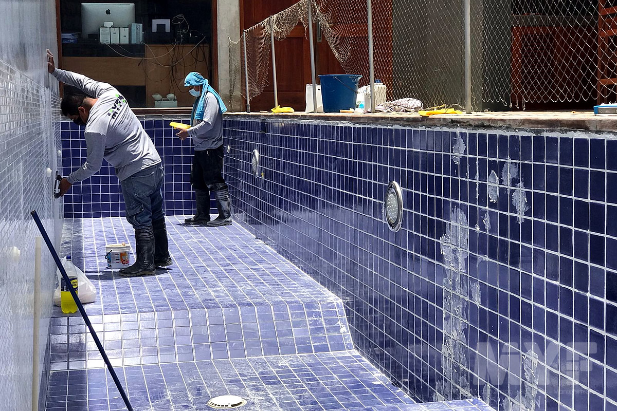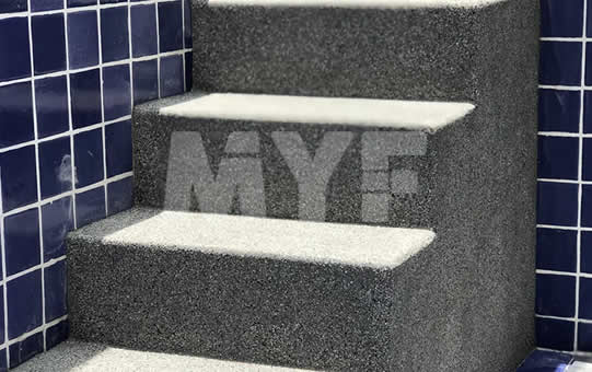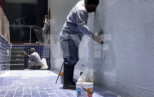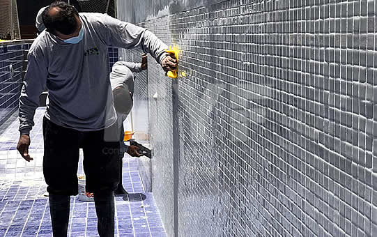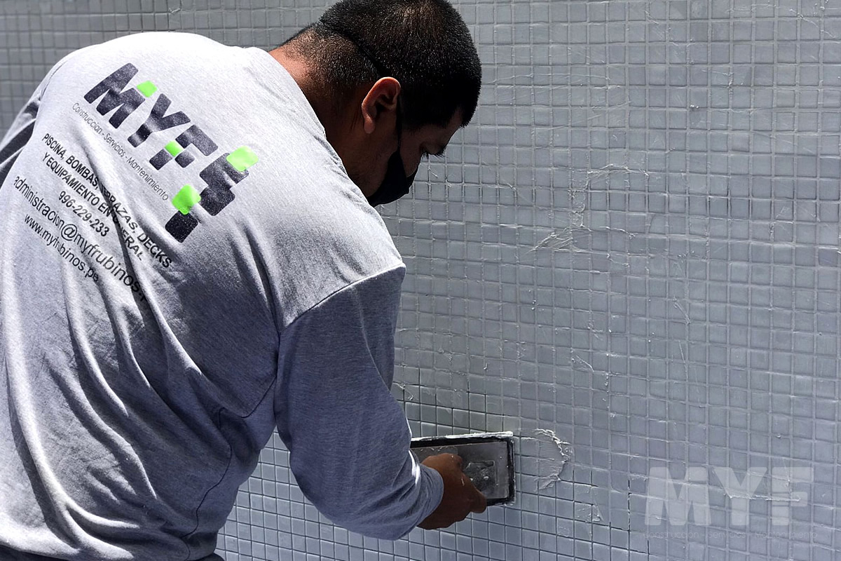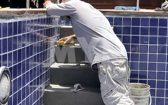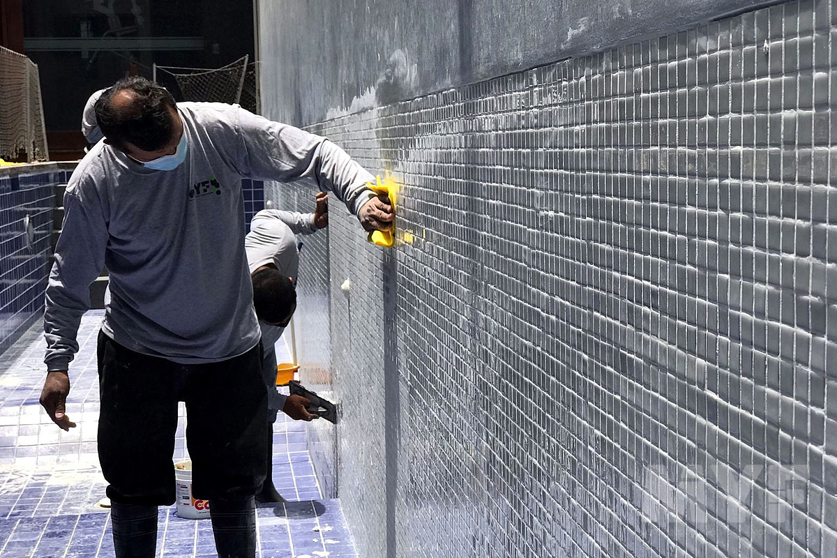 Limpieza y retiro de fragua antigua, re-fraguado total de pepelma. Revestimiento de escalera en terraza negro.