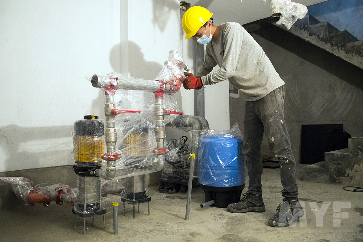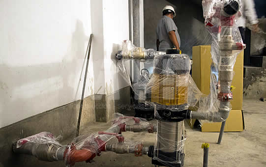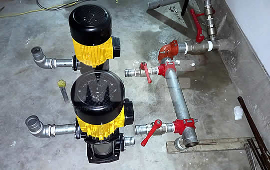Equipamiento de sistema de presión constante de dos bombas ESPA de 5HP con implementación de desagüe y sumidero
