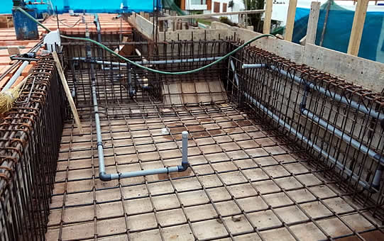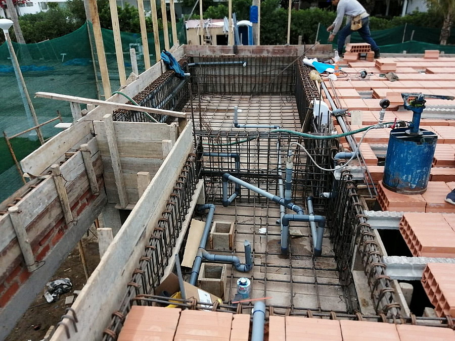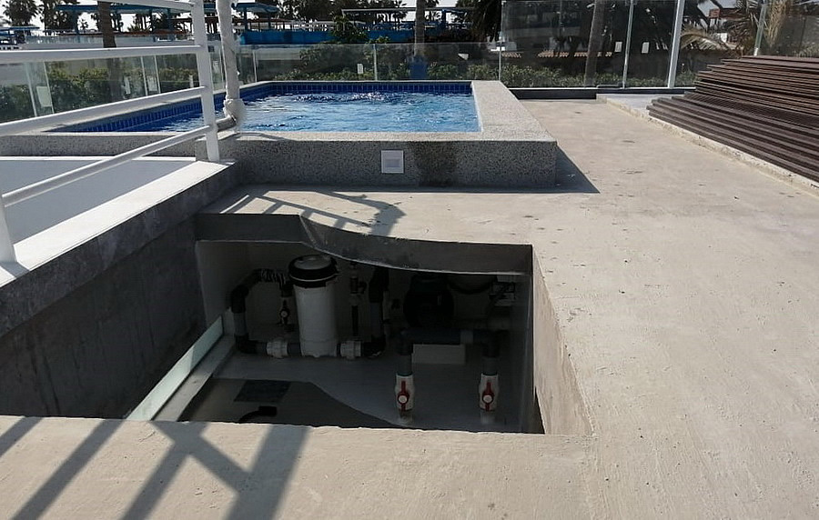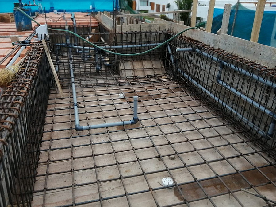 Construcción de piscina en segundo piso desde cero e implementación de cuarto de bombas.